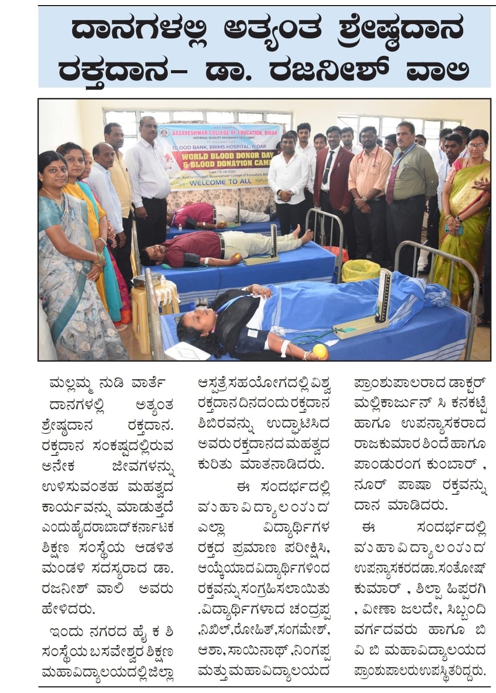 It is with pride I wish to state that in the last 4 decades Basaveshwar College of Education, Bidar has grown at large capacity of teachers in the Kalyana Karnataka and State. The institutions have flourished by offering the best of their teacher education and provide every student teacher a rich vibrant experience, a high quality, value-based and outcome based teachers.