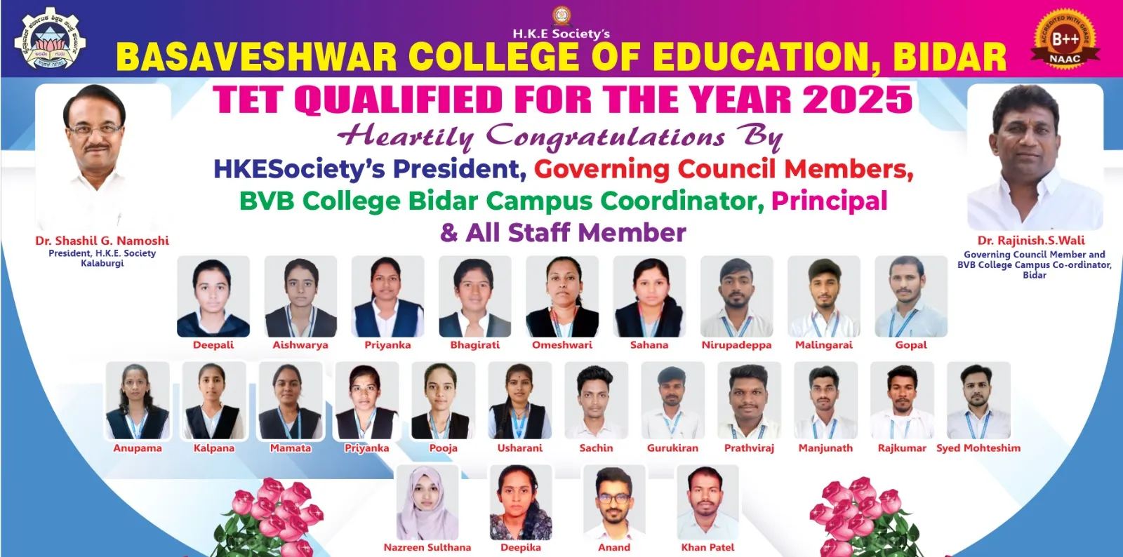 It is with pride I wish to state that in the last 4 decades Basaveshwar College of Education, Bidar has grown at large capacity of teachers in the Kalyana Karnataka and State. The institutions have flourished by offering the best of their teacher education and provide every student teacher a rich vibrant experience, a high quality, value-based and outcome based teachers.
